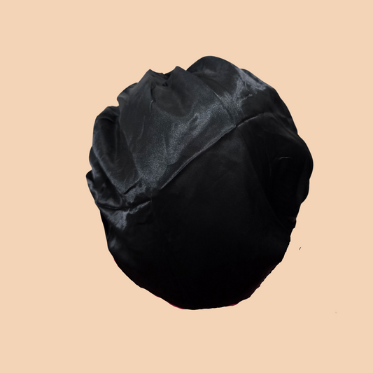 Silky Satin Black Bonnet – Large, Adjustable Fit for Braids, Locs & Natural Hair